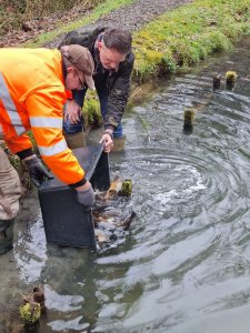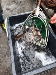 Die Teiche füllen sich so langsam mit Leben heute am 13. März 2024 kamen wieder viele Fische die im unteren Teich besetzt wurden, Schleien, Barsche, Rotaugen, Rofedern, Rapfen usw.